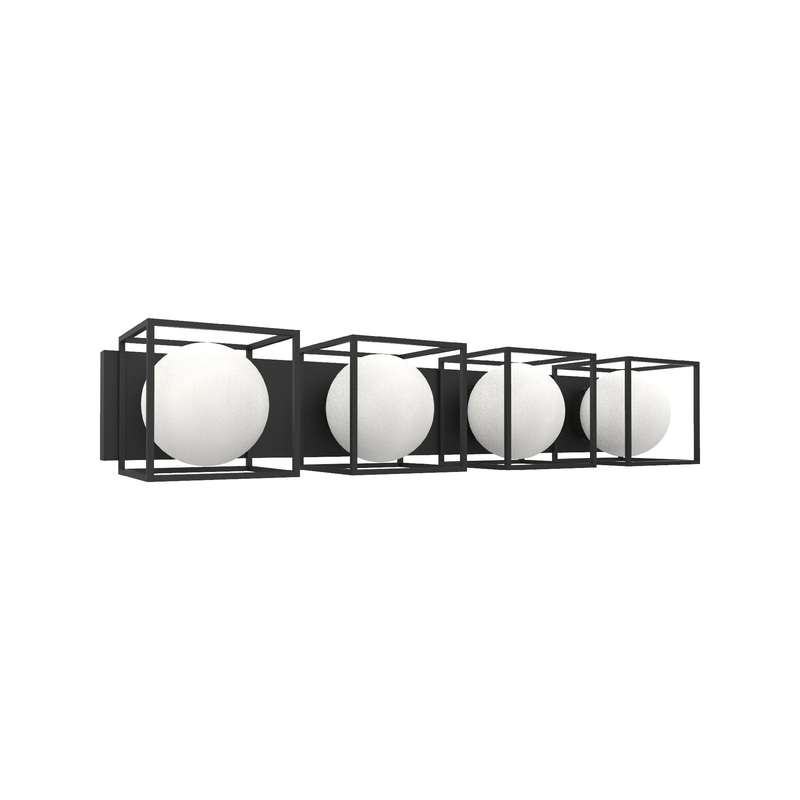 OverviewSlim metal contours the edges of cube shape cages, presenting a lofty silhouette and modern expression to the 18 Vanity Wall Light from Vinci Lighting. Tucked inside each open, airy frame is an elegant Art Deco-like opal glass globe, which pushes a