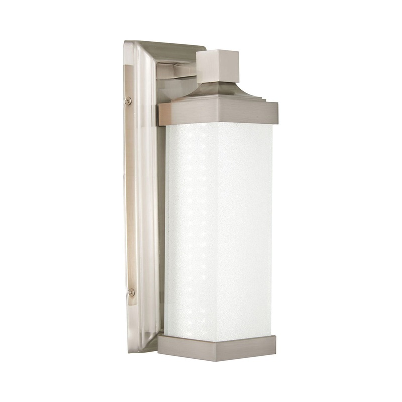 Stylish accenting embellishes the lantern-inspired look of the 5501 LED Wall Light from Minka Lavery. With a slight barbershop aesthetic, this metal and etched white glass fixture offers a captivating look in interior lighting.