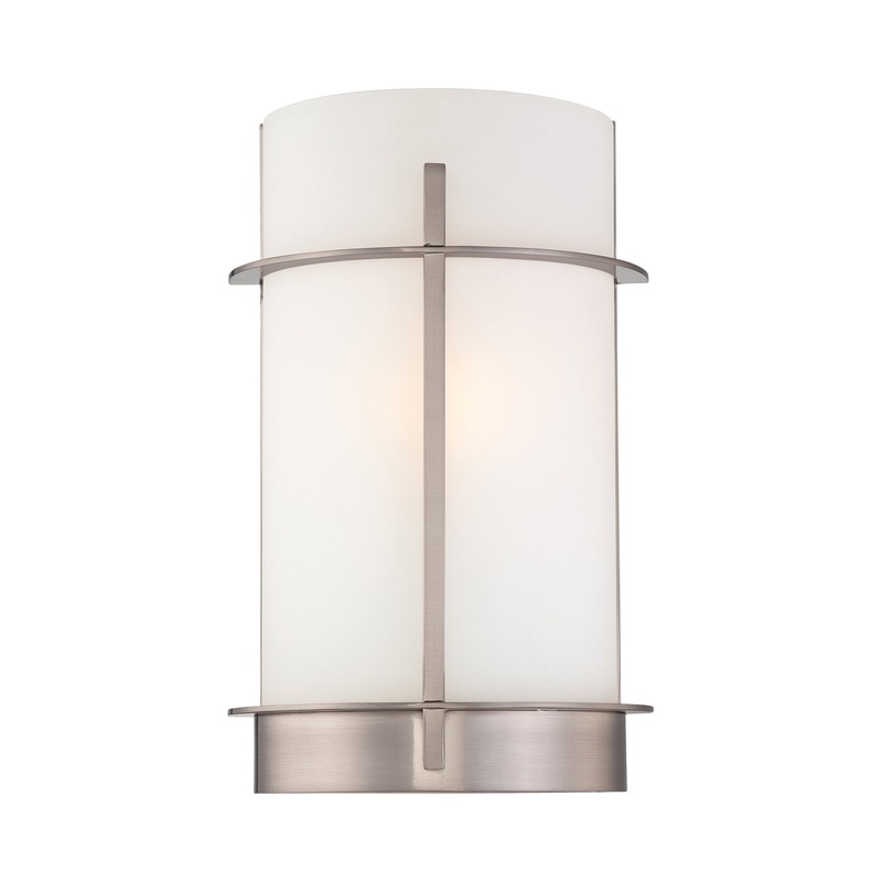 Tempting style adds focus to a light fixture created to impress. The 6460 Wall Light from Minka Lavery devotes design strategy to minimalist detailing, adding slender perpendicular metal strips matching a classic base. With an etched opal glass cylinder shade, this fixture masters the art of silhouetting.