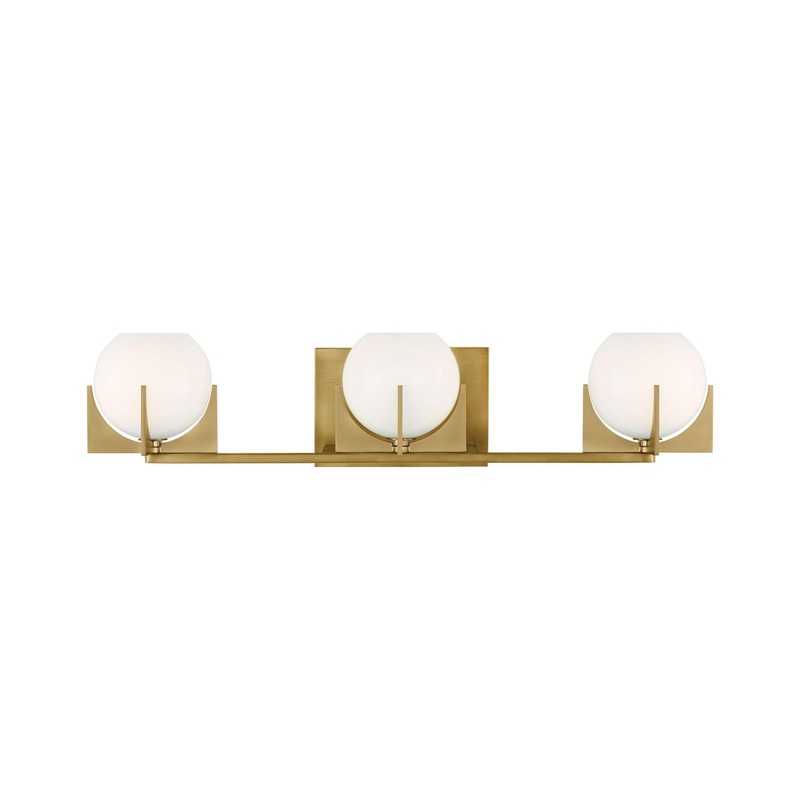 Glowing orbs and metallic framing create a cool, ultra-modernist ambiance for the Abbott LED Bath Vanity Light from Generation Lighting.