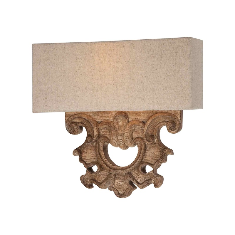 Harken back to a rich, traditional design era to realize the dramatic impact of a light fixture with no shortage of its own exotic glam. Perfect for warm design palettes, the Abbott Place Wall Light from Minka Lavery embraces Olde World gallery style to produce a decadent and statement-making impact. Intricate carvings and silhouetting fashion an extraordinary oak patina finish lower mount, as a boxy beige fabric shade maintains a low-key tone.