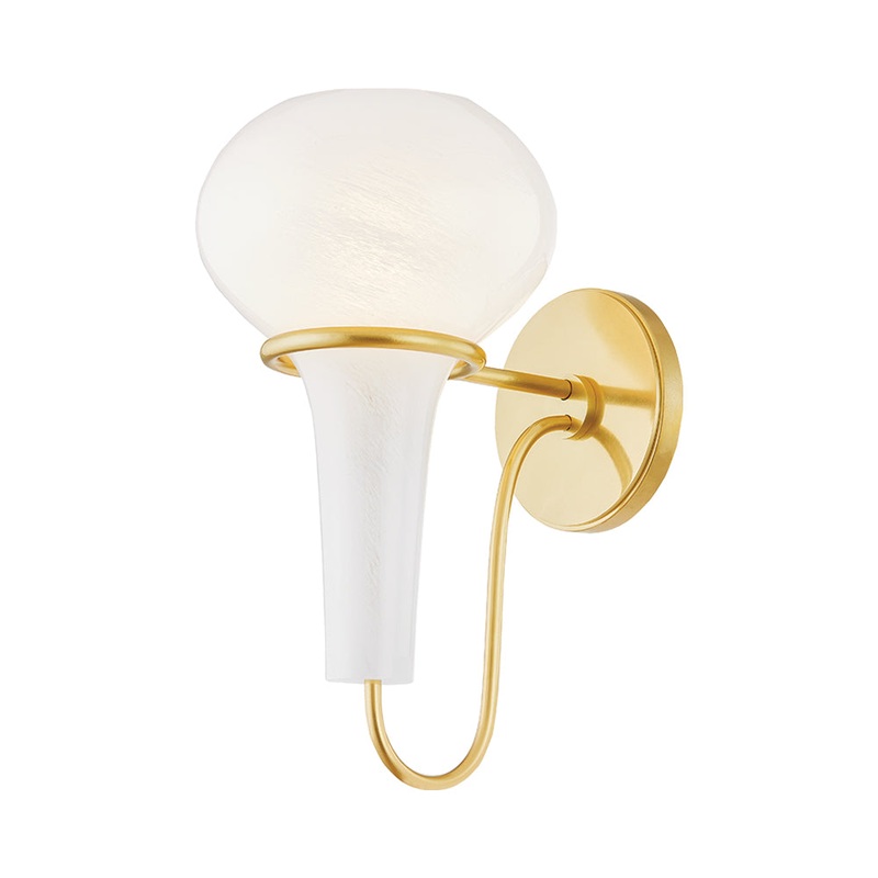 OverviewA mesmerizing motif and glam design draw rapt attention to the Adams Corner Wall Light from Hudson Valley Lighting. Silhouetting is ethereal with a deeply curved metal arm and holder, supporting swirled cloud glass shade with intriguing shaping. Th