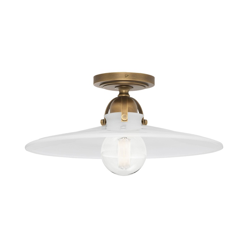 Tempting Art Deco mixes with industrial vibes, producing the Arial Flush Mount Ceiling Light from Robert Abbey and delivering a decadent blend of white glass and metal accents.