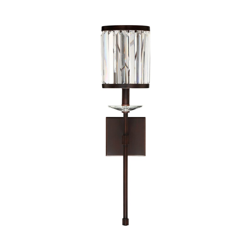 OverviewGlam aesthetics add an exquisite look and feel of the Ashbourne Bath Wall Light from Savoy House. Rich with decadent elements, this modern fixture blends metal framing with an elongated tail and rectangular crystal strips that serve as light diffus