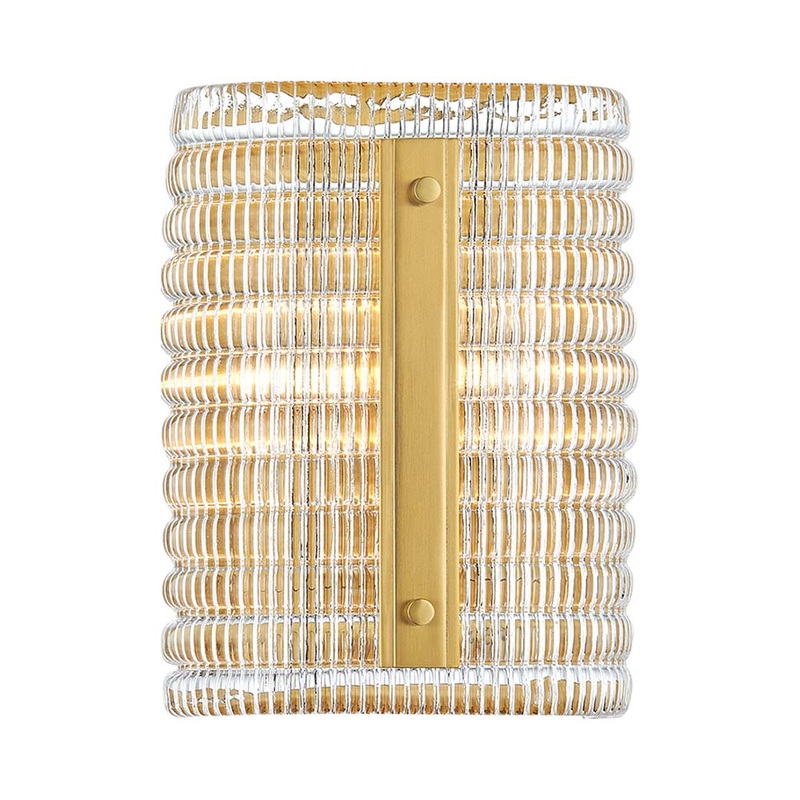 The intricate textural beauty of glass highlights how the Athens Wall Light from Hudson Valley Lighting was created to make a statement. Orderly rows of glass are embellished with gleaming metal accents for perfect balance.