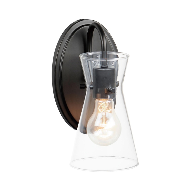 The motif is both romantic and elegant as the Ava Bath Wall Light from Maxim Lighting complements a master or guest bath space with style to spare. Beautifully mixing steel construction with concave clear glass shades, this fixture offers an inspired industrial look paired with lovely delicate glass. Make a vanity stand out with an artsy yet sophisticated light source.