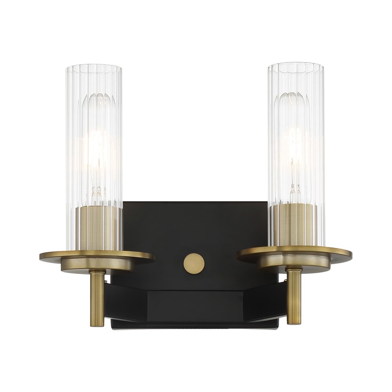 Cool sophistication sparkles in the Baldwin Park Vanity Wall Light from Minka Lavery. A stellar addition to any bathroom, it pairs gently ribbed glass cylinder shades with soft brass bobeches for a clean, modern look and feel. A coal wall plate completes the look and adds both depth and richness to your vanity.