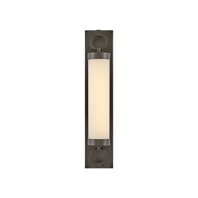 OverviewSheer charm invents a delightful design motif in the Baylor LED Bath Vanity Light from Hinkley. With industrial influence, its slender silhouette features metal framing with a cylinder etched opal glass shade. Ornate ball designs on metal capped en