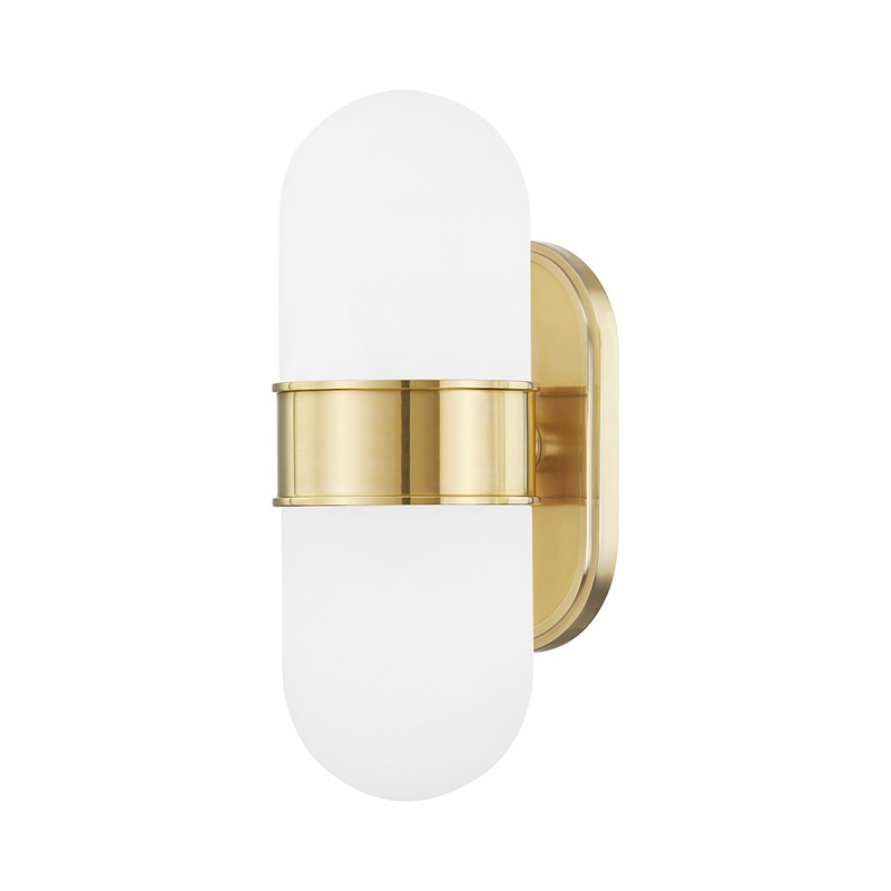 Plucked right out of a Mid-Century Modern aesthetic, the Beckler Wall Light from Hudson Valley Lighting creates an enticing look with smooth, elegant style. A capsule-inspired delicate glass diffuser stays in place, mounted to an oval metal backplate and secured with a center cuff adding exquisite beauty.