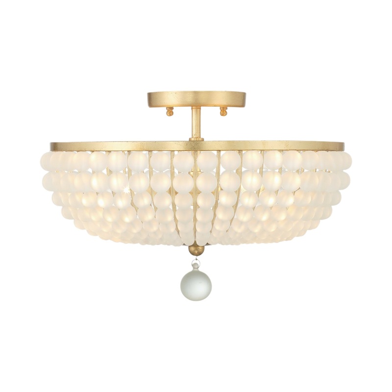 OverviewCelebrate the stylish boho motif in a light fixture with a cheery, cheeky design. Rows of glass beads taper into a shade as the Bella Semi Flush Mount Ceiling Light from Crystorama lifts the mood in a foyer, kitchen, or dining space. Metal framing