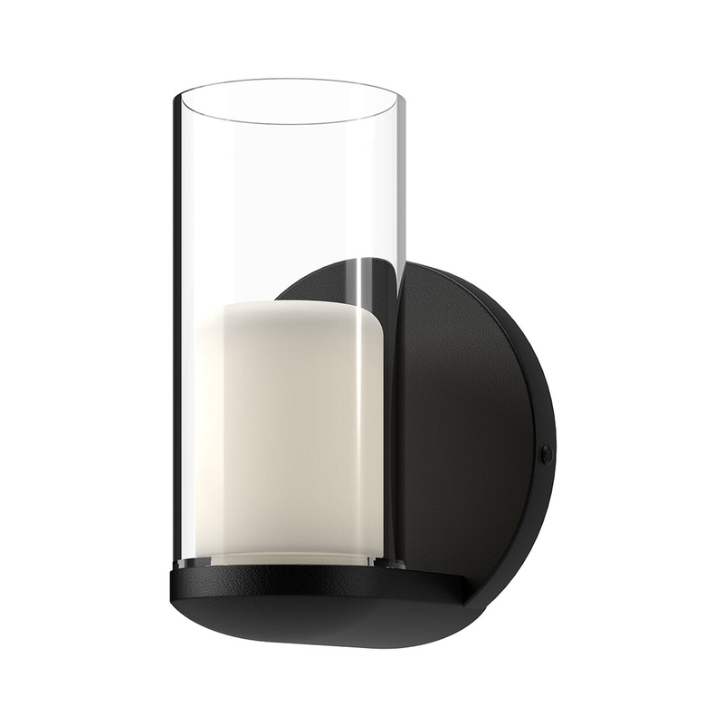 Revert to classic style with the energy-efficient illumination and chic style of the Birch LED Wall Light from Kuzco Lighting. Cylinder silhouetting in a thick, clear glass shade rests against a round metal wall plate, offering a home to glowing light coming from a frosted glass diffuser. Upscale or casual, bathrooms are highlighted with sophistication.