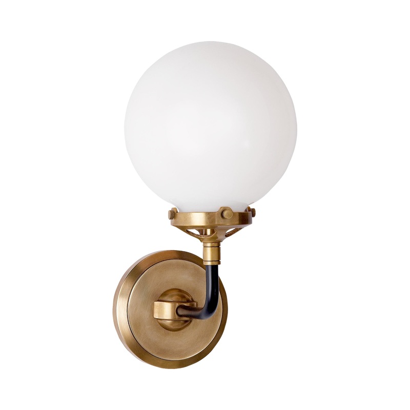OverviewA single globe shade perfectly accentuates the industrial character of the Bistro Bath Wall Light from Visual Comfort Signature. Beautiful lighting a vanity or dressing space, the sconce features a crisp two-tone finish highlighting a round wall pl
