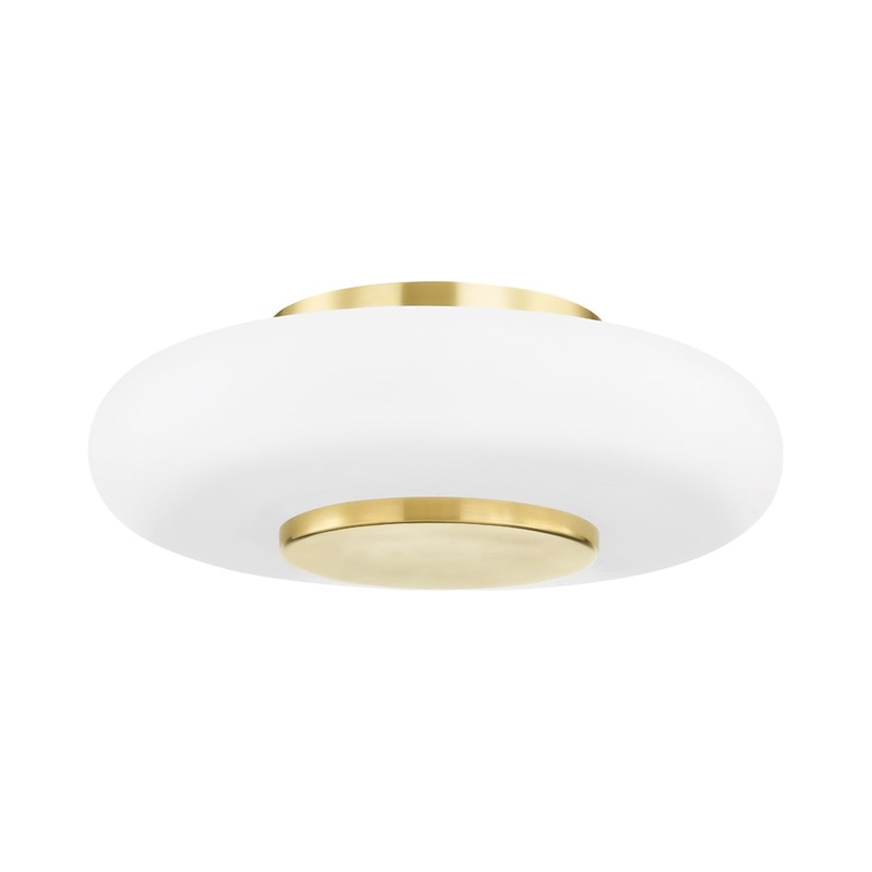 OverviewExaggerated shaping of a disc-like shade accompanies decadent metal framing to bring a stylish vibe in lighting. The Blyford LED Flush Mount Ceiling Light from Hudson Valley Lighting offers integrated LED modules that infuse energy-efficient lighti