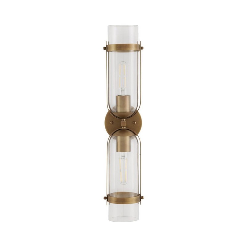 Rich with detail, the metal and glass composition of this stylish light fixture transforms any space into a venue of design. The Bonardi Wall Light from Currey and Company makes heavy use of metal framing, linear and circular, to complement clear glass tube shades. Let this intriguing light bring a mix of old and new to embellish any space.