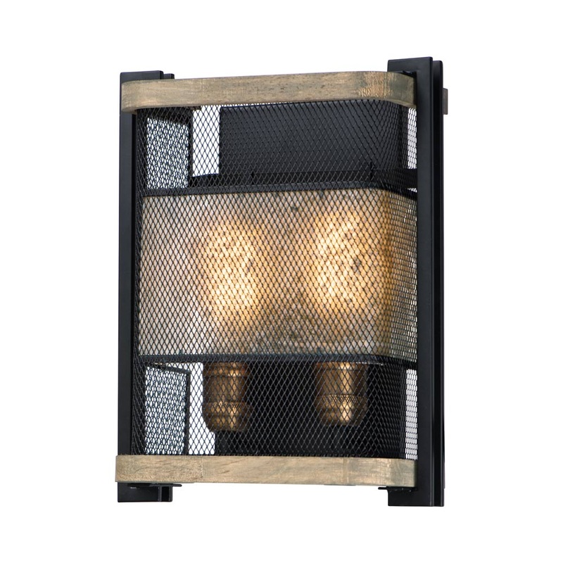 OverviewPair industrial grit with an organic dose of earthy elegance to achieve a custom look in lighting. The Boundry Bath Wall Light from Maxim Lighting leans toward a boxy framed cage iteration fashioned of black steel and barn wood, with texture found