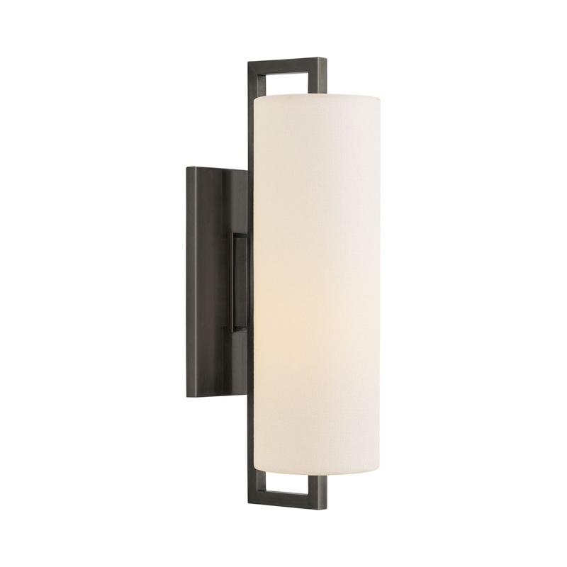 OverviewCreate a minimalist expression inside interiors with the energy-efficient modern Bowen Wall Light from Visual Comfort Signature. A slender linen pillar shade offers a hint of texture and a soft diffused glow, matched by the contrasted sleek angled
