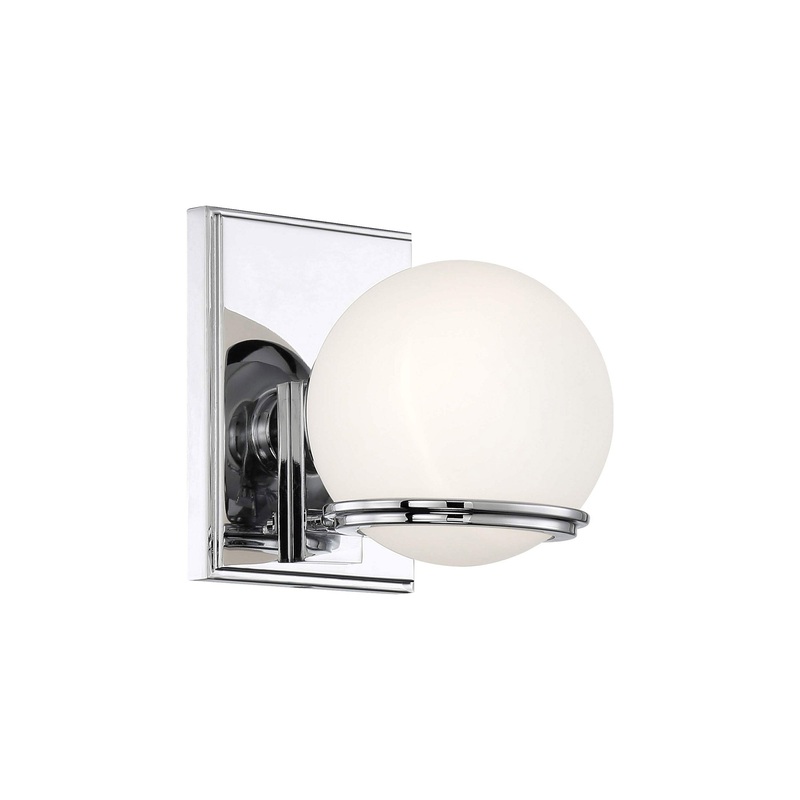 OverviewThe sleek design of the retro-inspired Broadway Nights LED Vanity Bath Light from Minka Lavery features metal rings with a glowing opaque glass orb resting inside. Adding a striking contrast to the milky white shade is a gleaming and lustrous chrom