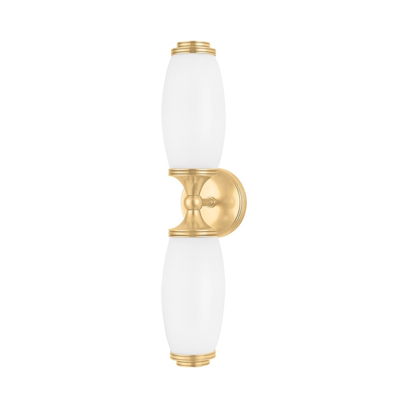 Personality goes overboard to create whimsy in the Brooke Wall Light from Hudson Valley Lighting, offering a hint of playful character to embellish its classic vintage aesthetic. Starting with heavy detail crafting a lush metal frame, this fixture dabbles in vintage artistry, sending glowing light through a pair of delicate opal shiny glass shades with fluid silhouetting. This fixture emanates a luxurious aesthetic suite to more upscale settings.