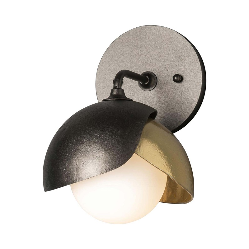 OverviewCrafted by skilled artisans, the Brooklyn Bath Wall Light from Hubbardton Forge is an eye-catching choice. A dome of hand-forged steel is hammered to create exceptional texture, providing the perfect contrast to a smooth opal glass globe shade tuck