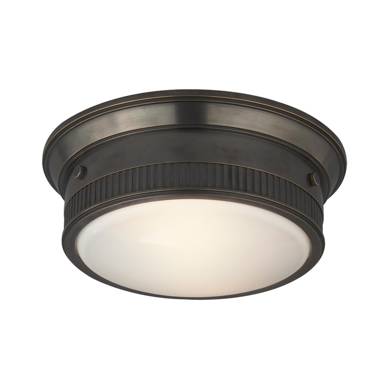 OverviewRibbed banding and rivet accents offer an industrialized flair to this contemporary Calliope Flush Mount Ceiling Light from Visual Comfort Signature. Capped off by an opaque shade, this stylish nautical-inspired flush mount elevates coastal cottage