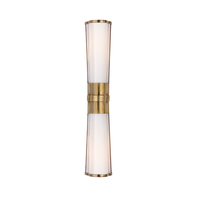 OverviewArt Deco-inspired influences shine through in this modern Carew Vanity Wall Light from Visual Comfort Signature, designed as a slender hourglass shape that offers a refined handsome aesthetic and glam touch. A white glass shade gives off a diffused