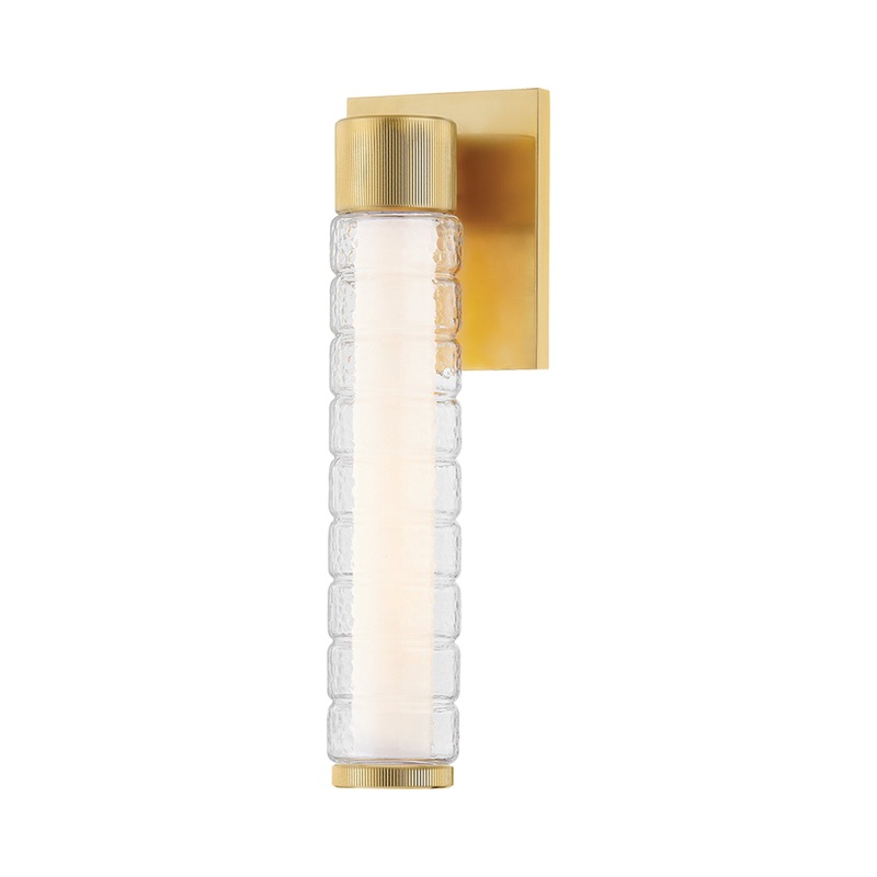 The Castor LED Bath Wall Light from Hudson Valley Lighting modernizes an iconic Art Deco motif, maintaining important minimalism with features that stand out. This fixture introduces sculptural and textural elegance to a modern bath space with ridged thick glass tubes alluding to a stacked configuration, and detail-rich aged brass metal end caps and a smooth backplate carving out a simple design with plenty of verve.