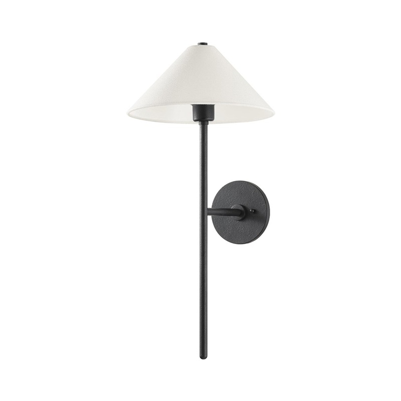 Embrace a touch of Asian inspiration that soothes the modern motif of this sophisticated sconce. The Cedar Wall Light from Troy Lighting plays off a classic shaded configuration with a bold forged iron stem and wall plate, as a crafty tapered off-white linen shade supplies striking contrast.