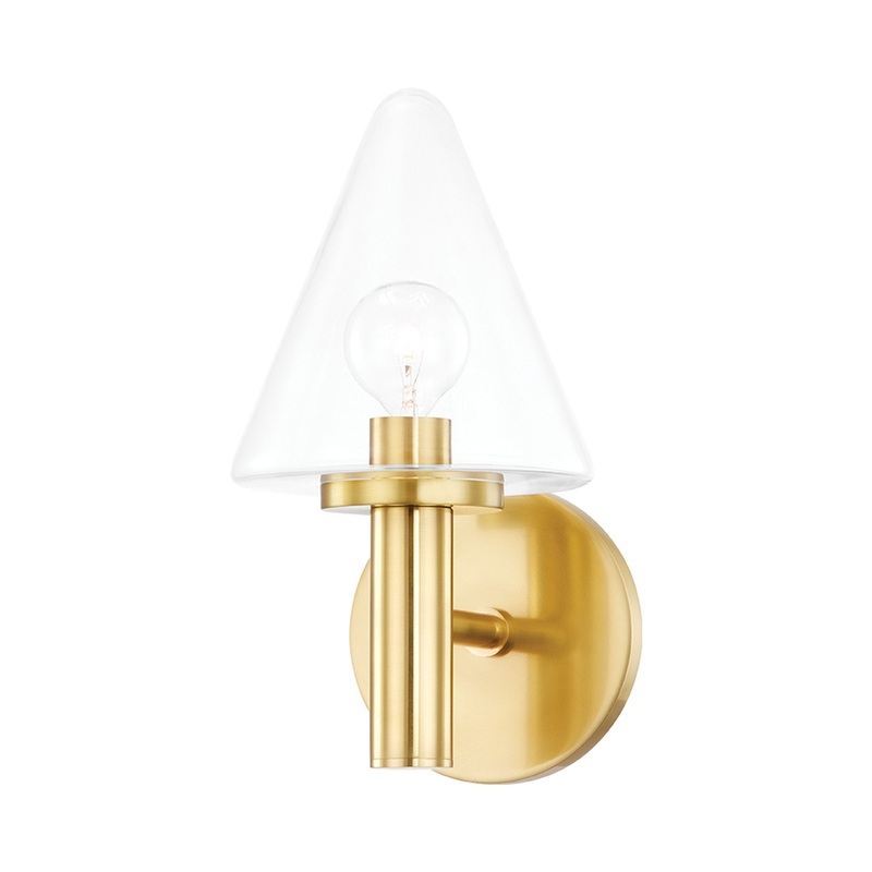 OverviewConnie is named after her unique conical shape. Her simple glass shade is contrasted with vibrant metal finishes available in antique brass and polished chrome. Available as a 1-light, 2-light, and 3-light wall sconce, make space for Connie's playf