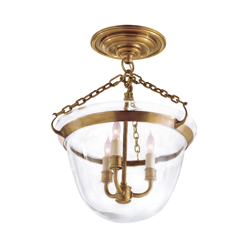 OverviewDelicate clear glass forms a shapely bell silhouette and an unobstructed view of romantic candelabra bulb mounts. Adding decadence to function, the Country Bell Jar Semi Flush Mount Ceiling Light from Visual Comfort Signature makes good use of glea