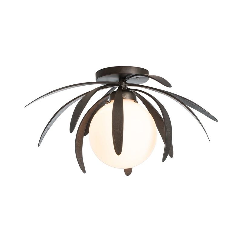 Flower accents drape like petals over the Dahlia Flush Mount Ceiling Light from Hubbardton Forge.