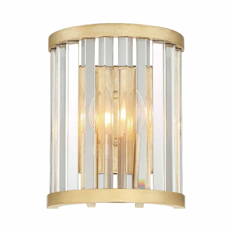OverviewThe Darcy Wall Light from Crystorama delivers a stunningly elegant look with surprisingly simple elements. Its half-moon shape hugs a wall space with distressed twilight metal banded framing and a matching backplate, with linear rods of hand-cut cr