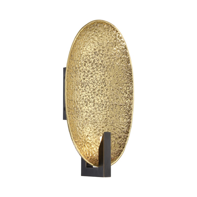 OverviewExquisite texture bounces light in interesting ways for the Daric Wall Light from Metropolitan Lighting. The organic look and feel is created with a shallow oval bowl in polished brass, offering incredible warmth and elegance in a sophisticated liv