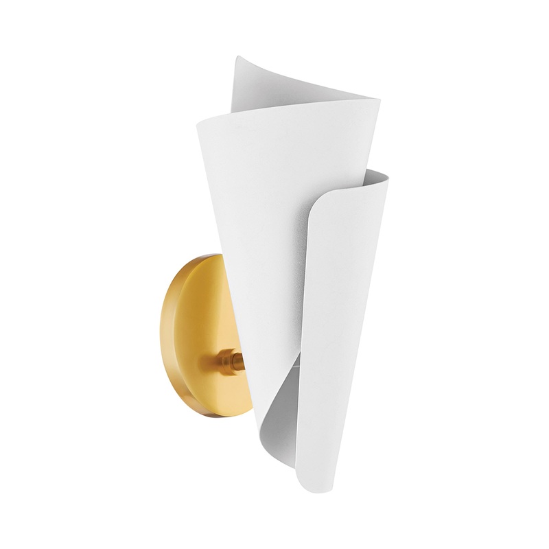 OverviewA curvy, spiraling metal shade creates a chic, artisan look for the Davina Wall Light from Mitzi. Its cool white finish balances texture and silhouette to create a gorgeous glow in a foyer, living area or bedroom. A round wall plate in an aged bras