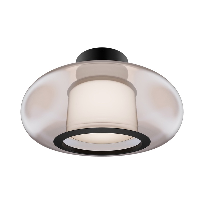 Attention shifts from floor to ceiling when the Doma LED Flush Mount Ceiling Light from dweLED appropriates a personality-rich motif with origins in the Mid-Century Modern era. Its notably shapely opaline outer glass shade and dimensional layering of black aluminum, its functional and utilitarian look is updated as it sends energy-efficient lighting downward.