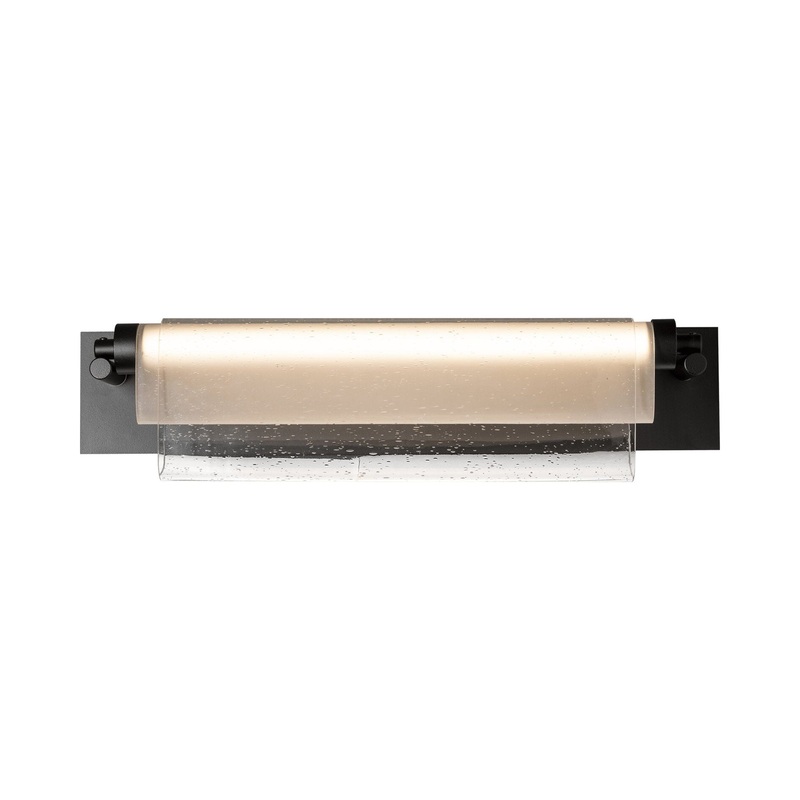 OverviewBold elements of industrial origin take on an artisan flavor in a light fixture that repurposes a transitional bathroom space. The Draped LED Bath Bar Light from Hubbardton Forge offers a dynamic design scheme with metal framing and a dual shade fe