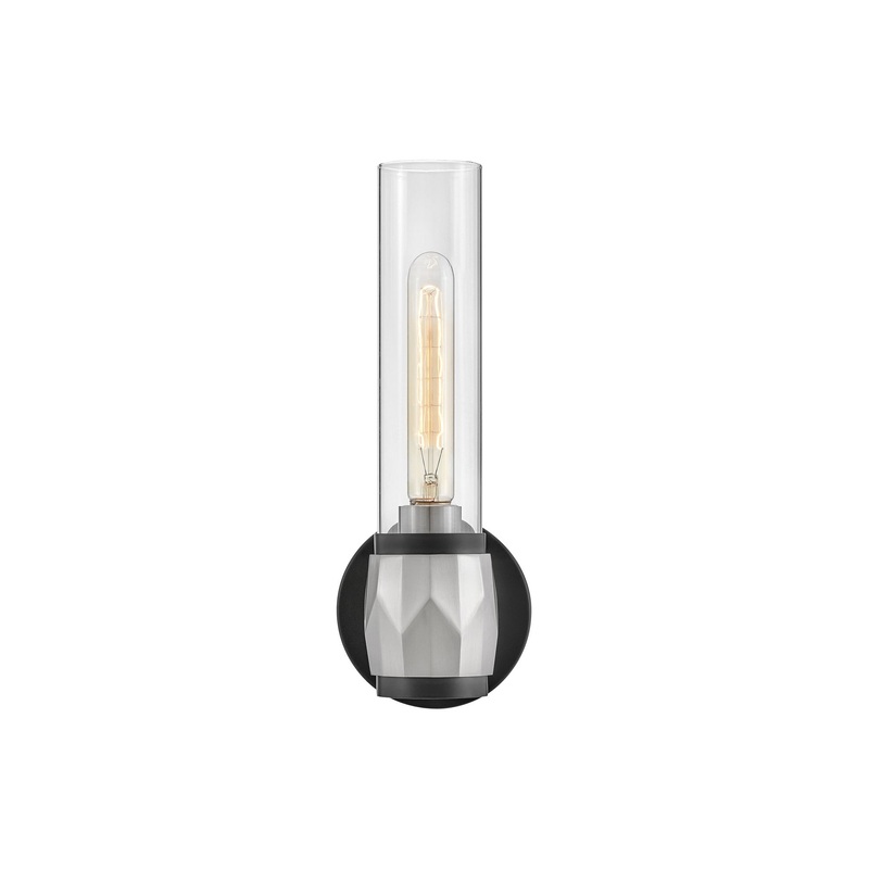 Remnants of classic design inspirations show through in the familiar silhouette of the Ellison Bath Vanity Light from Hinkley. Geometric design accents highlight the base of the light, while a cylinder of clear glass shades the tubular bulb within. Evoking an old world torch, this fixture is a brilliant update for modern industrial spaces.