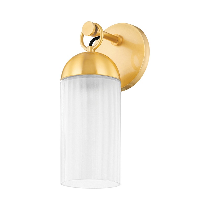 A graceful domed top and ring suspension create timeless energy for the Emory Wall Light from Mitzi. A rich finish offers a chic look and feel in a living or dining area, while a cylindrical shade delivers bright, glowing light. The shade is delicately ribbed, with an etched interior that ensures soft, diffused illumination.