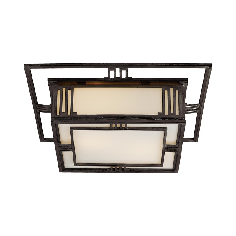 OverviewThe Enrique Flush Mount Ceiling Light from Visual Comfort Signature engages with a busy, energetic design form as it adds ambient lighting to a casual space. An abundance of angling and layering create a dynamic frame with white glass panel shades