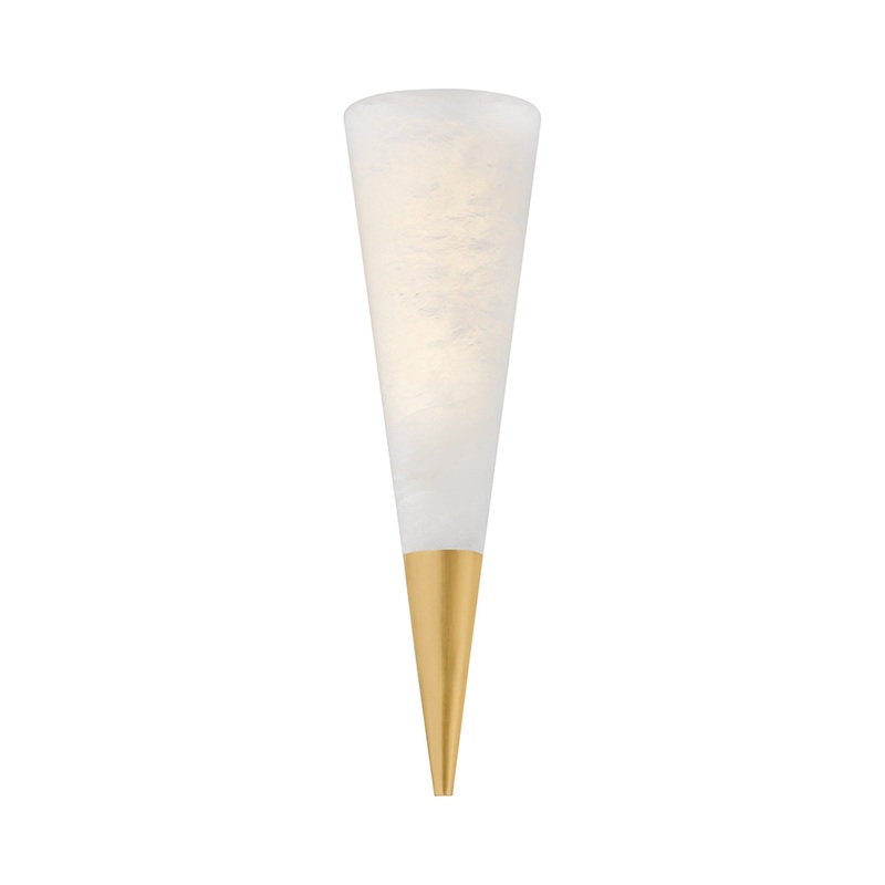 OverviewWe love the chic simplicity of the Fion LED Wall Light from Corbett Lighting, a sophisticated fixture harnessing minimalist power. Alabaster fashions a decadent conical shade, capped with an iron cone bottom element, toning down style elements to m