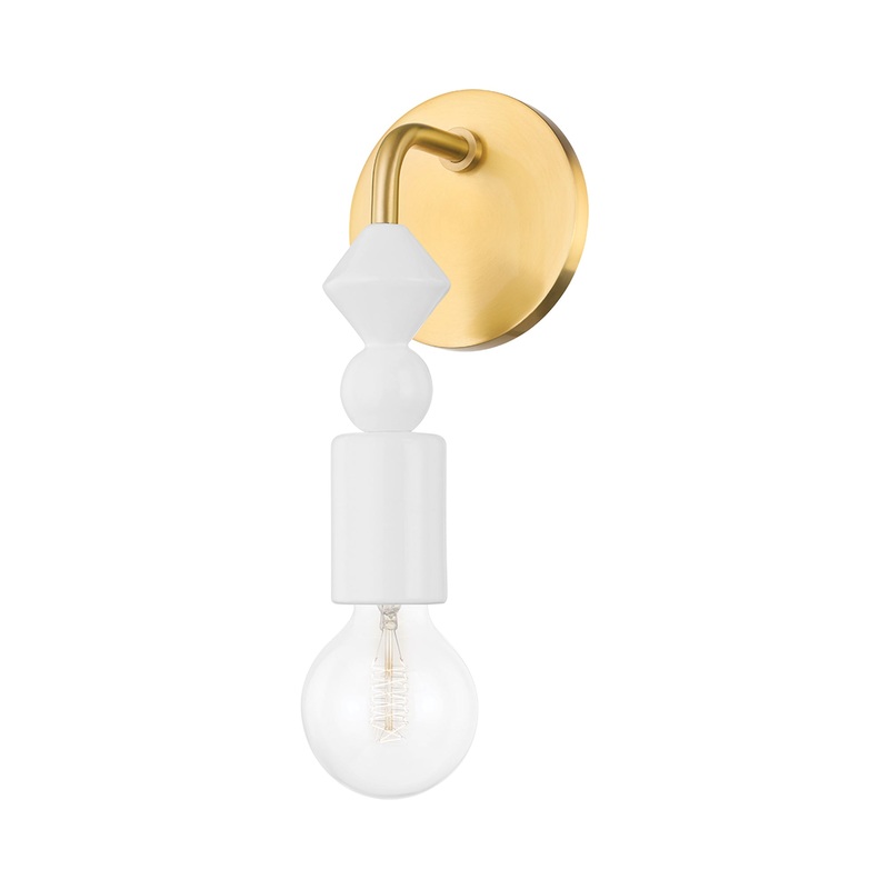 OverviewGlossy white baubles decorate the Flora Wall Light from Mitzi with jewel-inspired sophistication. A monochromatic look is embellished with an aged brass wall plate for a hint of warmth in any room.Product Features:Collection: FloraCountry of Origin