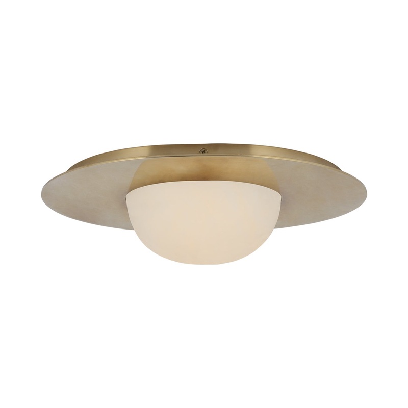 OverviewRepurpose a timeless art deco feel with the Fosse LED Flush Mount Ceiling Light from Visual Comfort Signature. Reminiscent of a pearl jeweler motif, its chic alabaster shade and wide, round metal stacked canopy becomes a statement piece in a dining