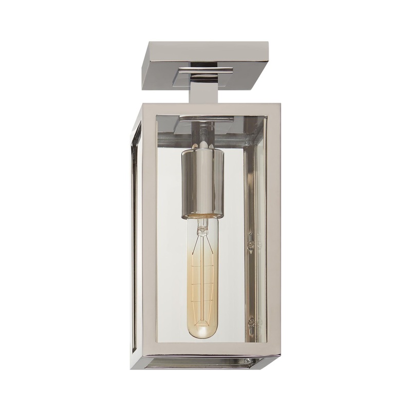 OverviewLustrous chrome finish metal delivers brilliant radiance to the Fresno Semi Flush Mount Ceiling Light from Visual Comfort Signature, creating a focal point in an upscale space. A geometric rectangular frame and clear glass panels pair with linear a