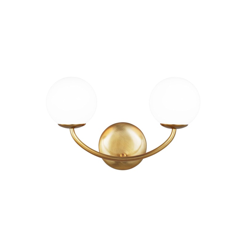 OverviewThe Galassia one light wall sconce by AERIN in burnished brass perfectly balances a glass globe and curving teardrop frame, giving it a contemporary look. The white glass casts a soft, welcoming glow over a space. This piece works particularly well