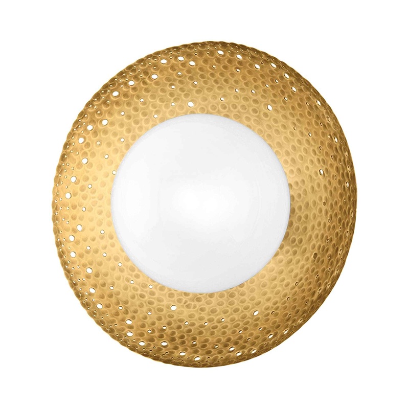 OverviewSet your sights on an exquisite design in lighting, exuding a textural influence. The Glimmer Wall Light from Hudson Valley Lighting is a show-stopping fixture that transcends function and moves straight into gallery fare. An aged brass round metal