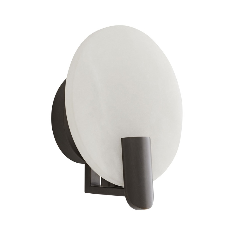Organic simplicity exudes decadence in a measured way as the Halette Wall Light from Arteriors perfects the science of minimalism and artistry. This fixture joins basic shapes and a mix of natural alabaster with rugged steel. Illumination effects from this sconce are enticing and efficient, making it a natural choice for a chic, timeless space.