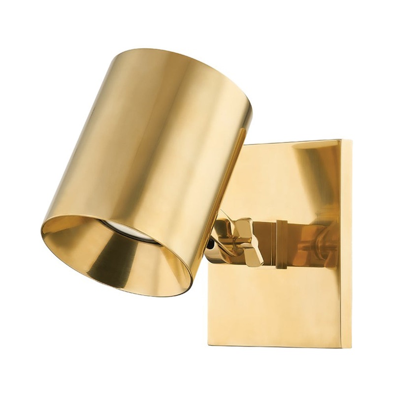 Emulating an exterior spotlight with interior glam, the Highgrove Wall Light from Hudson Valley Lighting is sleek and minimalist with a big impact. Gleaming metal construction pairs a cylinder shade with a rectangular back plate, adding versatility and adjustable angles customizing light delivery.