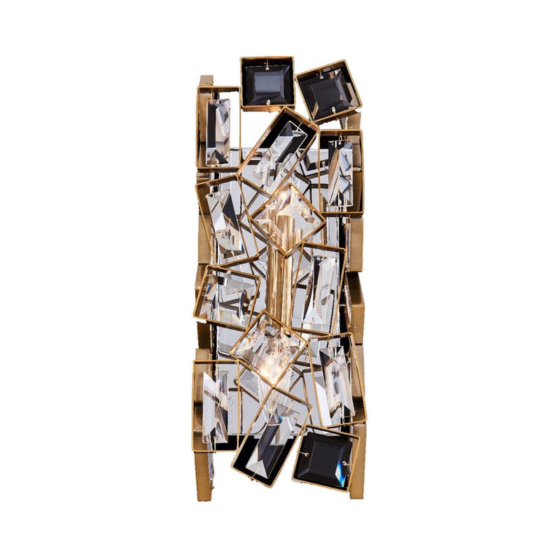 Scattered square and rectangular frames are filled with faceted Firenze crystal to create the sparkling curtain of the Inclanta Wall Light from Allegri. A warm winter bronze finish is a perfect complement, delivering contrast and sophistication that works in both formal and more comfortable living spaces.
