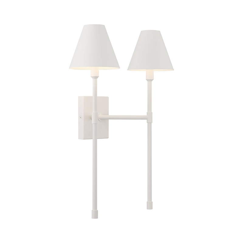OverviewA double dose of illumination works wonders in modern living spaces when the Jefferson Double Wall Light from Savoy House delivers its traditional yet crisp silhouette. This metal fixture features symmetry and a classic shade design with elongated