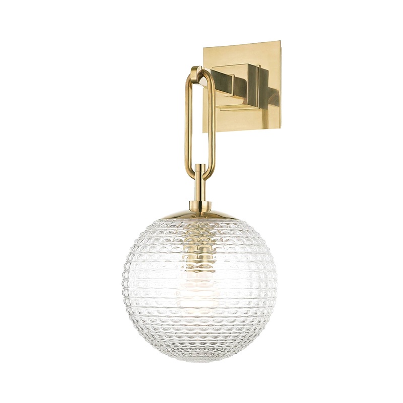 A festive design suggests ornamental influence in a fixture that’s ideal for all settings. The Jewett Wall Light from Hudson Valley Lighting delivers a charming motif with a single textured glass orb glowing with soft illumination. Metal framing offers a delightful presentation, updated with chic accents.