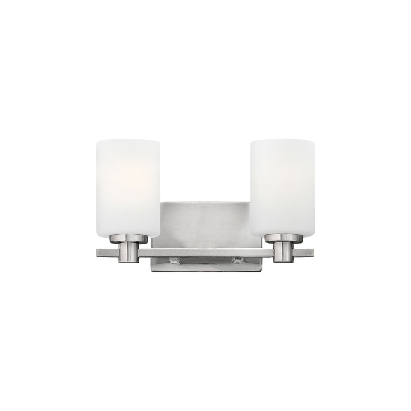 Karlie’s clean design is transitional in style and will complement a variety of decor. Featuring precision die-cast cups and cylindrical, etched opal glass, it is available in Brushed Nickel and Chrome.